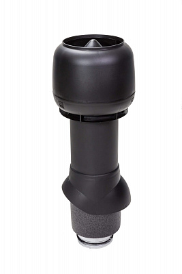 Труба теплоизолирована для предотвращения образования конденсата в трубе. Внутренняя труба изготовлена из оцинкованной стали. Длина внутренней трубы позволяет вставить ее в подводимый воздуховод на длину 300 мм. Это облегчает вертикальный монтаж в тесных чердачных помещениях и делает конструкцию более прочной. Нижний край внутренней трубы имеет резиновый уплотнитель, герметизирующий соединение трубы и воздуховода. Колпак вентиляционного выхода защищает от попадания осадков и грязи в канал. Проходной элемент для монтажа подбирается по типу кровельного материала.