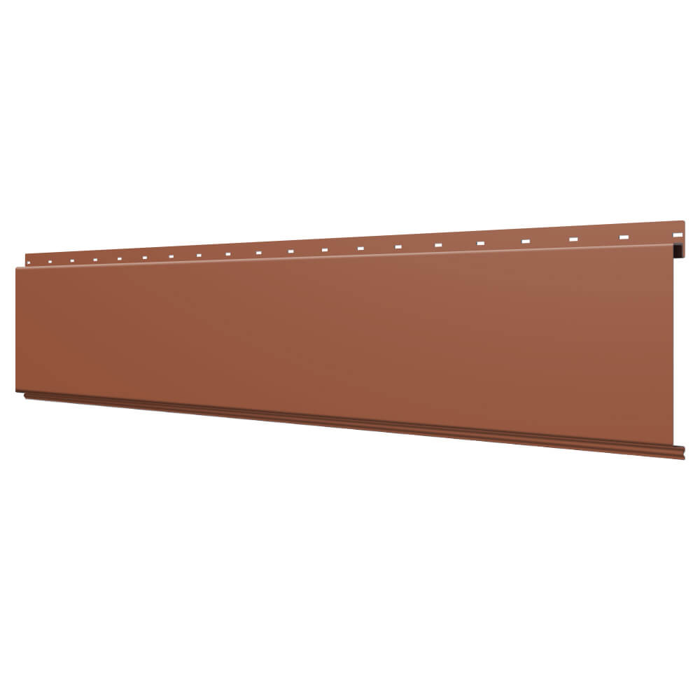 Линеарная потолочно-стеновая панель ГЛАДКАЯ цвет RAL8004 Терракотовый применяется в качестве софитов для подшивы крыши, наружной и внутренней отделки потолков, стен, фронтонов фасада дома в Петропавловске.