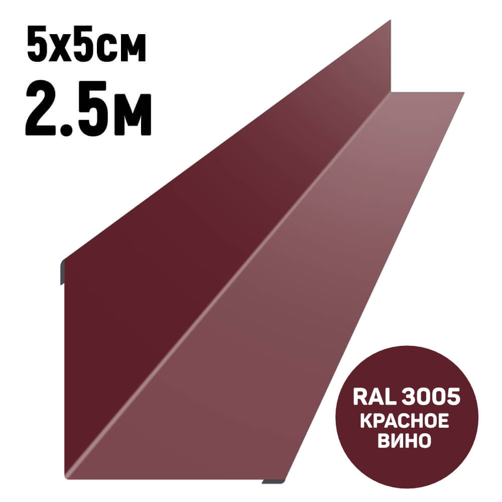 Уголок внутренний 5*5см длина 2,5м RAL3005 Красное вино